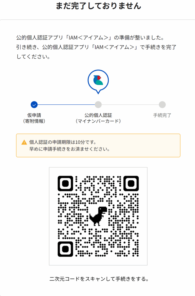 6.二次元コードが表示されるので、お手持ちのスマートフォンからスキャンして申請手続きを進める